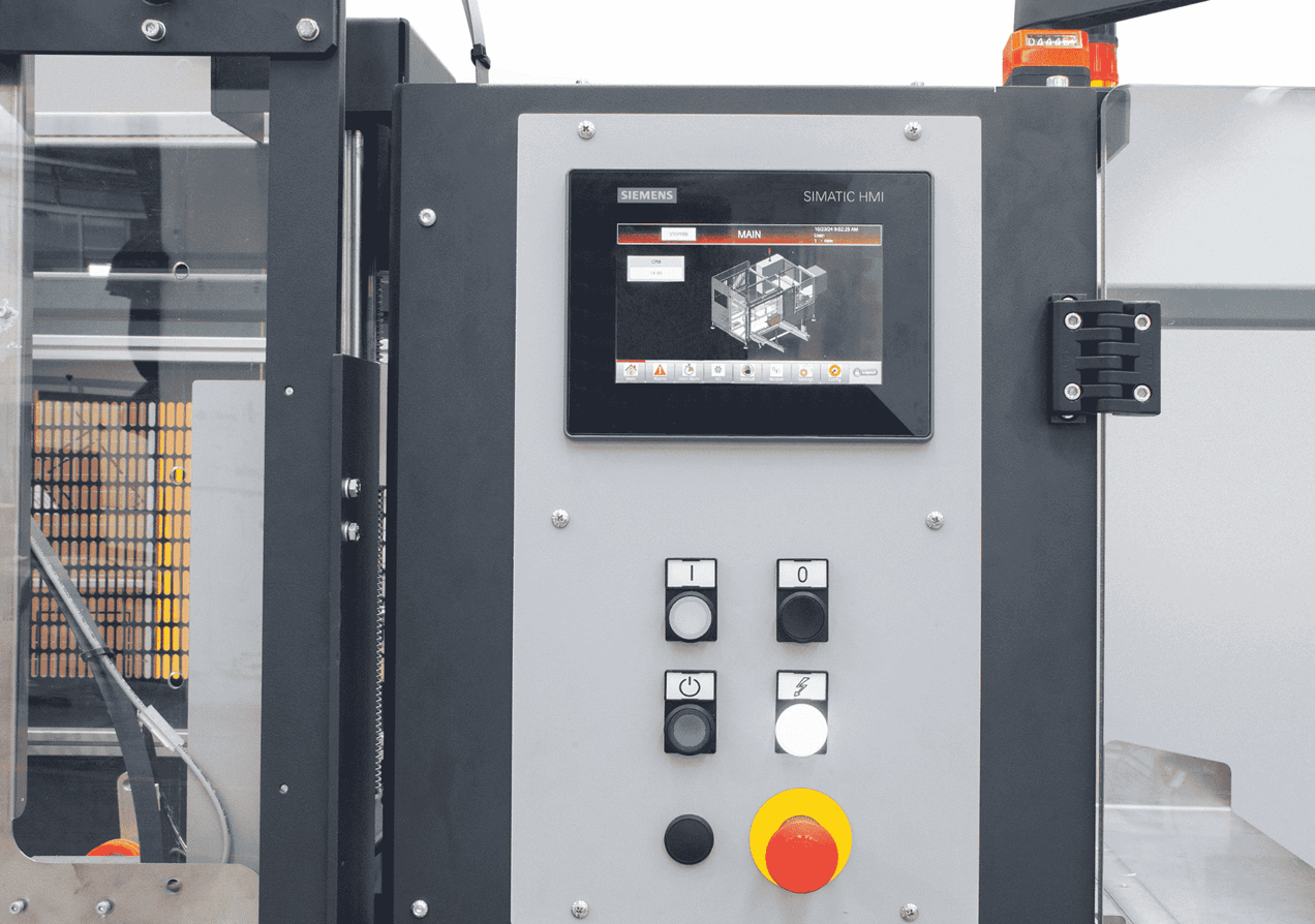 Med en PLC-baserad design möjliggörs komplett signalutbyte, vilket gör maskinen enkel att integrera i nya eller befintliga produktionslinjer. Den erbjuder även full flexibilitet, med möjlighet att arbeta med både höger- och vänsterhänta lådor i samma maskin (tillval).