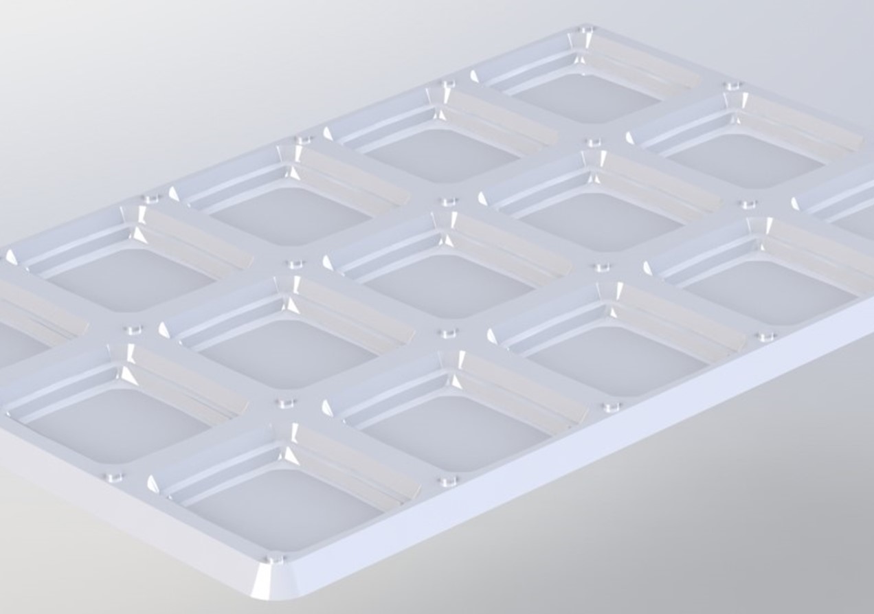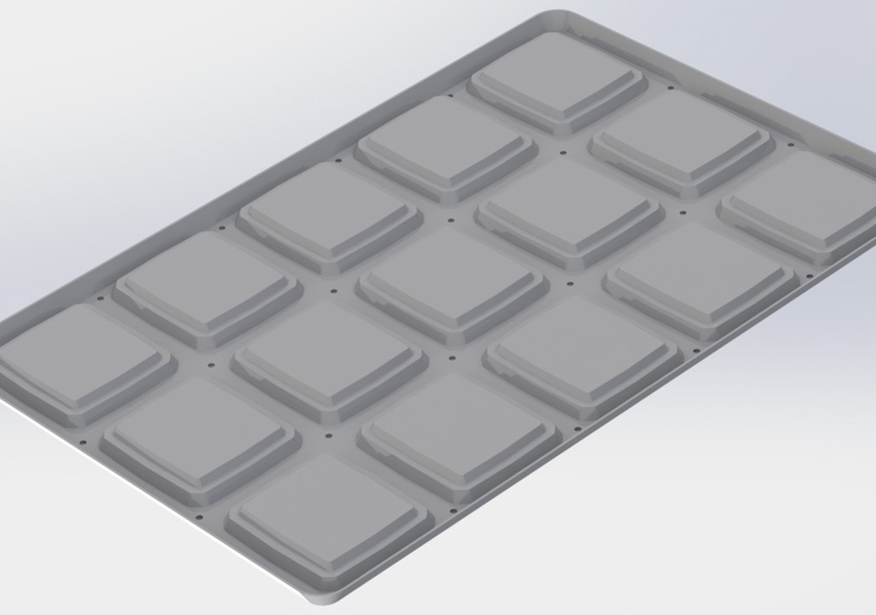– Emballaget utgörs av tre likadana lock av termoformad plast som läggs under, mellan och ovanpå två lager med sammanlagt trettio produkter. Konstruktionen är utformad så att de tre lagren låser fast produkterna, och de står sedan helt stilla på pallen.