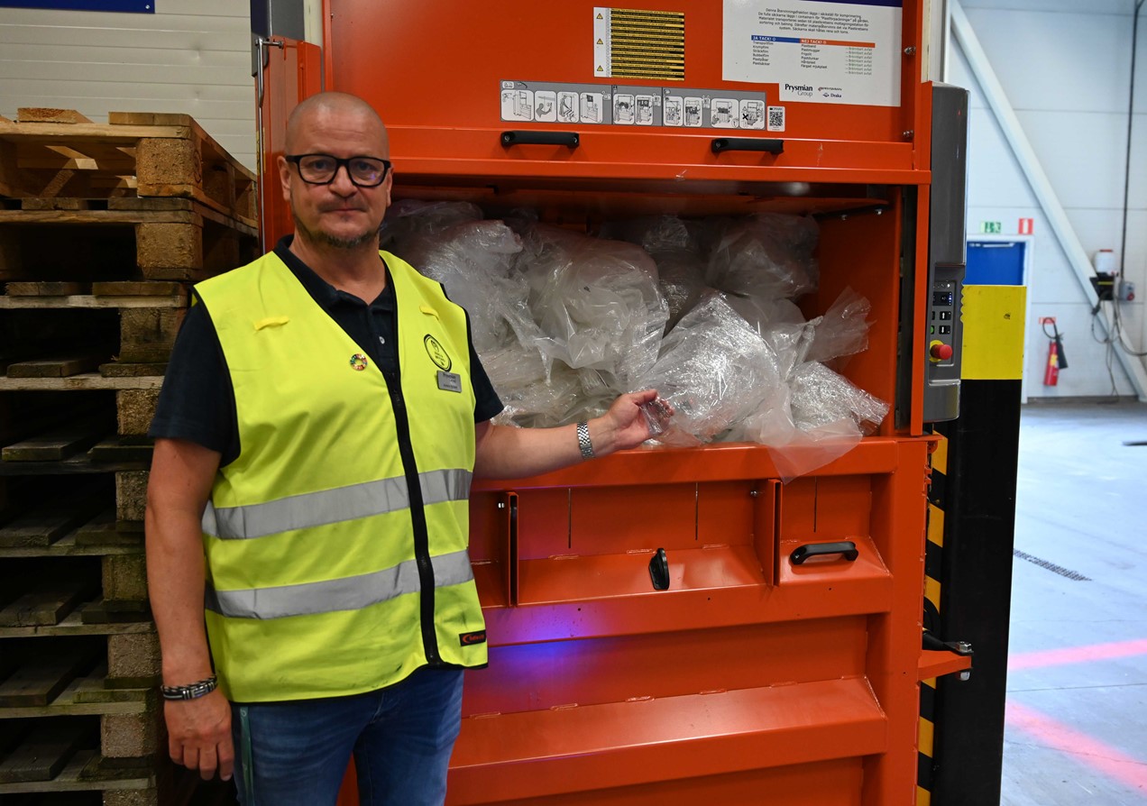 Ett exempel på en kund som visat stort engagemang i samarbetet och som även deltog i IVL:s forskningsprojekt är Prysmian i Sverige. Trots att forskningsprojektet är avslutat har vi nu tillsammans fortsatt att utveckla ett skarpt materialflöde där återanvänt emballagematerial hämtas upp av oss för att sedan granuleras och bli råmaterial för nytt emballagematerial.